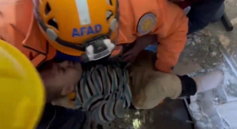 Um menino de 2 anos foi resgatado nesta quinta-feira (9) dos escombros de um prédio que foi ao chão após o devastador terremoto que atingiu a Síria e a Turquia na última segunda-feira (6). Um vídeo compartilhado pela Fundação de Ajuda Humanitária (IHH, na sigla em inglês) mostra o momento em que a criança turca é retirada de um monte de concreto e ferro retorcido.