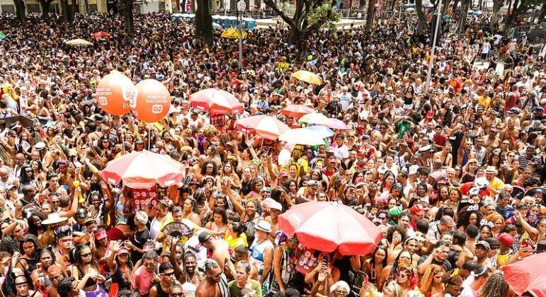 Os foliões já tomam a Rua Primeiro de Março, no centro da cidade, ao som de Quem não chora não mama, o refrão da marchinha do Bola