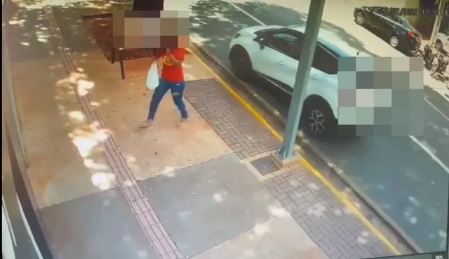 Imagens de uma câmera de segurança flagraram o momento que a mulher atravessou a rua e foi atingida pelo veículo.