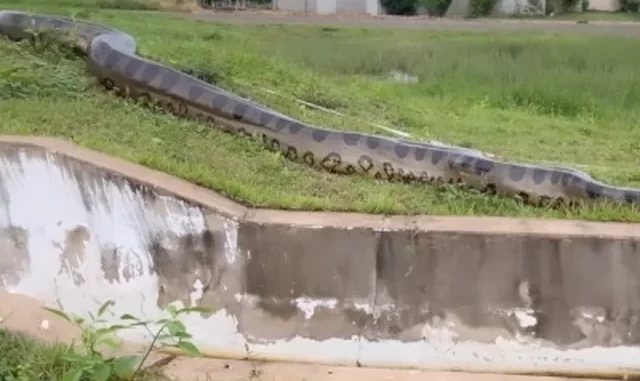 VÍDEO: Sucuri gigante ‘passeia’ perto de moradores em bairro da cidade de Bonito em Mato Grosso do Sul