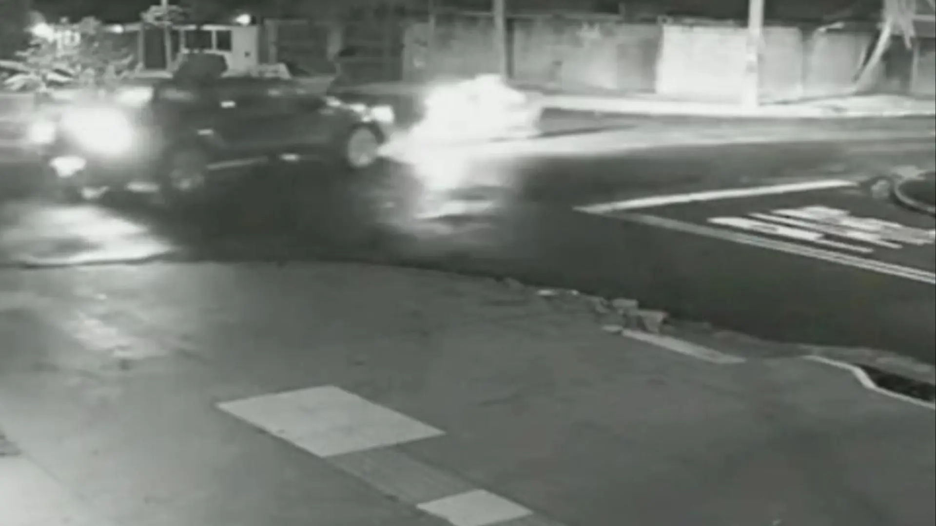 Câmeras de segurança flagraram o acidente, no qual o motociclista e motorista estavam na Fernão Dias: a vítima descia e a caminhonete no outro sentido, quando o motorista teria feito a conversão para entrar na Nicomedes Vieira de Rezende, provocando a colisão.