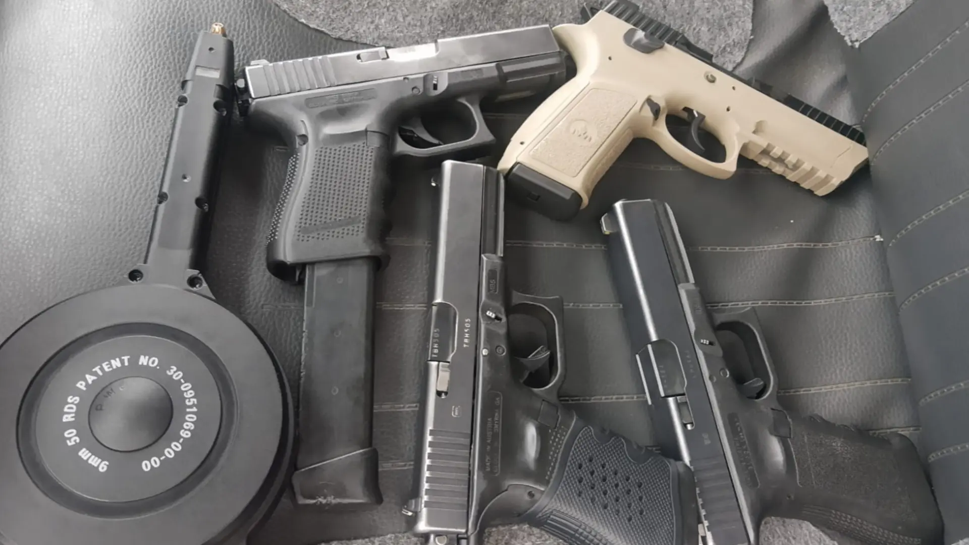 Com os dois presos foram encontradas quatro pistolas no interior do veículo. O GEP (Grupamento de Escolta Penitenciária) está auxiliando a Polícia Militar na operação.