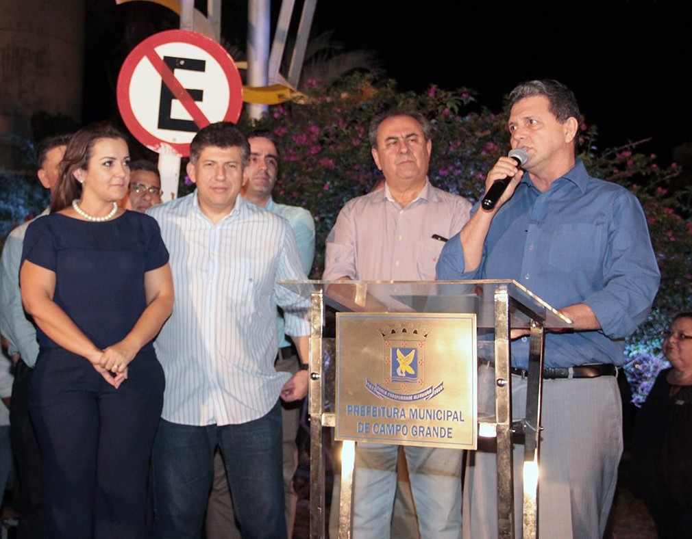 João Rocha discursa em evento com a prefeita Adriane Lopes. (Foto: Divulgação/CMCG)