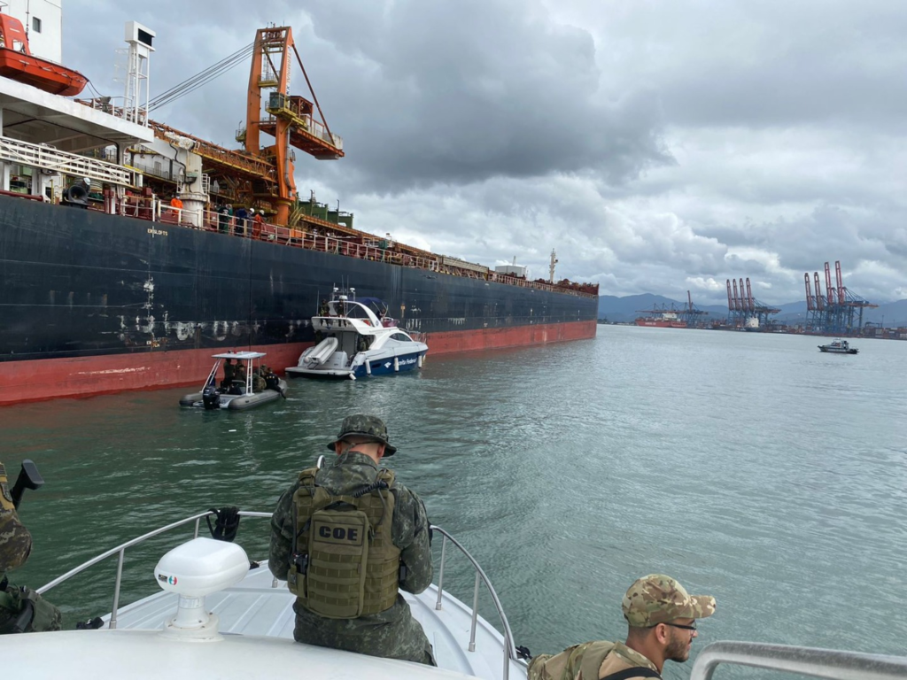 Uma operação entre a Polícia Federal, a Receita Federal, a Marinha do Brasil e a PM Ambiental apreendeu mais de 250 kg de cocaína no Porto de Santos. A ação dos agentes ocorreu no domingo (28).