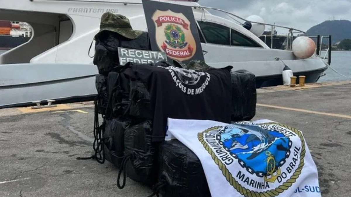 A droga foi encontrada durante uma inspeção em um navio carregado com enxofre. Segundo a Polícia Federal, a embarcação estava com centenas de tabletes da substância embalada em fardos, no casco do navio.