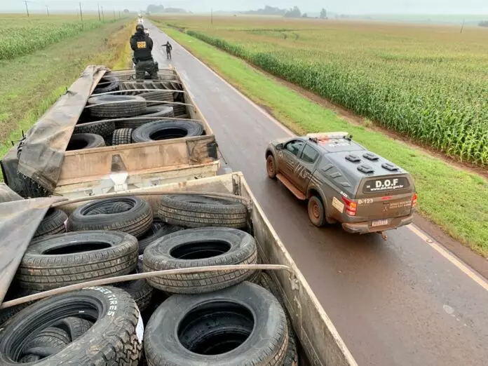 A carreta seguia pela rodovia MS-386, no sentido Ponta Porã/Amambai, quando foi abordada pelos policiais. Inicialmente, o condutor disse que estava sem carga e que seguia para Amambai, mas durante a vistoria localizou-se os pneus ilegais.