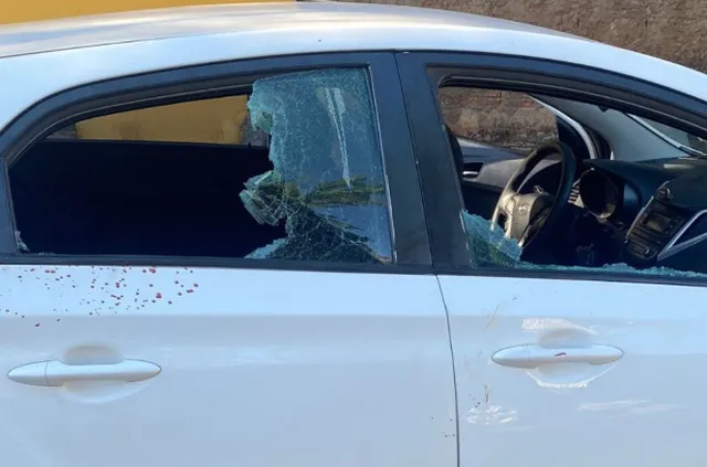 Vidro de carro quebrado; confusão entre motorista e passageira terminou com mulher esfaqueada, em Campo Grande — Foto: Osvaldo Nóbrega