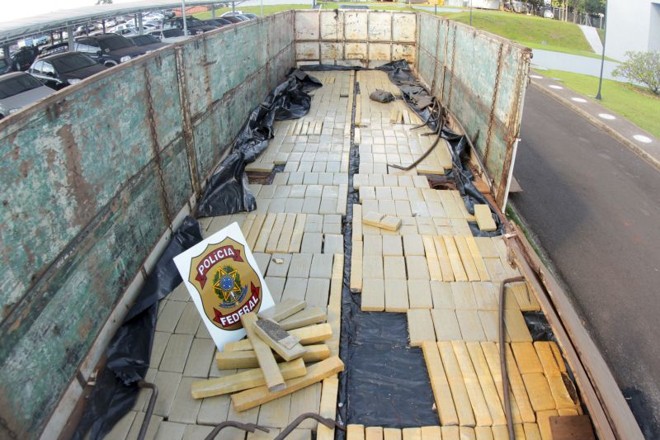 A Polícia Federal apreendeu neste domingo (16) aproximadamente 350 quilos de maconha, 12 quilos de crack e 4 quilos de cocaína no fundo falso de uma carreta que estava estacionada em um posto de combustível na BR 101 Rod. Gov. Mario Covas, próximo distrito Calogi.