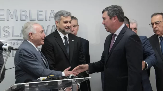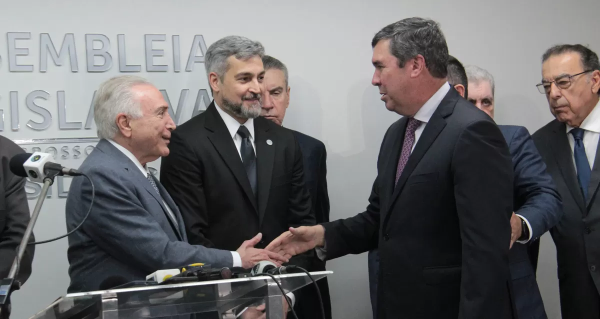 Michel Temer, do Brasil, e Mario Abdo Benítez, do Paraguai, participaram do evento na Assembleia