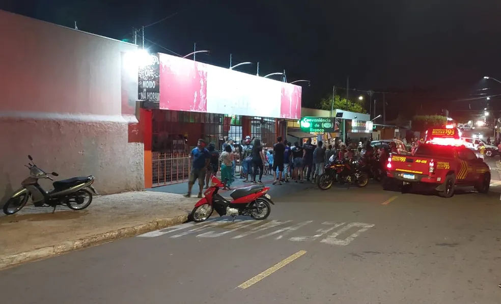 Conforme as imagens, as vítimas estavam na mesa de um bar quando dois motociclistas se aproximaram atirando.
