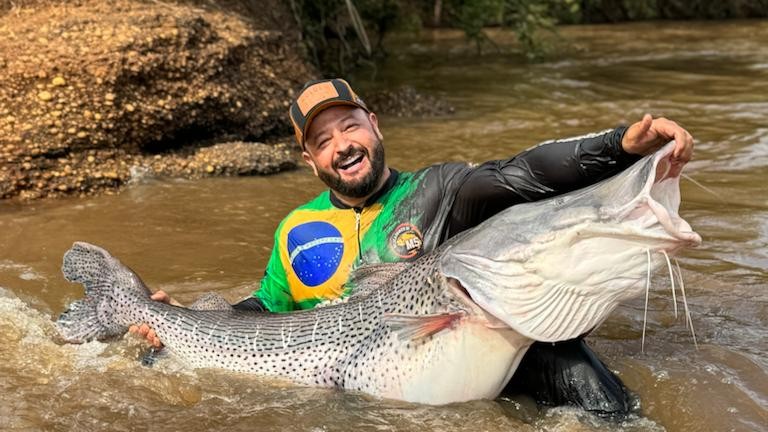No último sábado (28), Pintado fêmea de 1,78 metro foi capturado no Rio Dourados , tudo indica ser o maior da espécie. O animal com quase um metro e oitenta, e mais de 70 quilos.