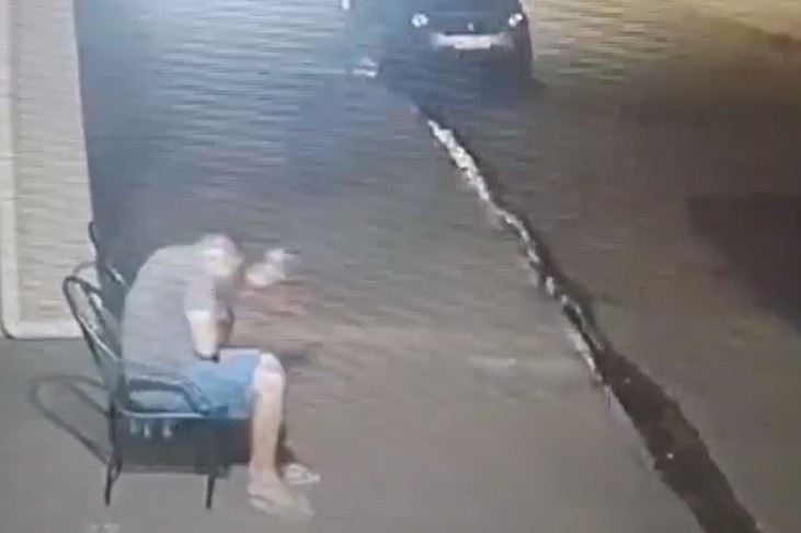 Imagens das câmeras de segurança da conveniência Prime mostra o momento em que um veículo Chevrolet Chevrolet Corsa de cor preta se aproxima e os passageiros disparam contra o comerciante Dirley de Souza Borges, de 41 anos, na rua Frei Cirino João Primon, no bairro Vila Bela, em Coxim.