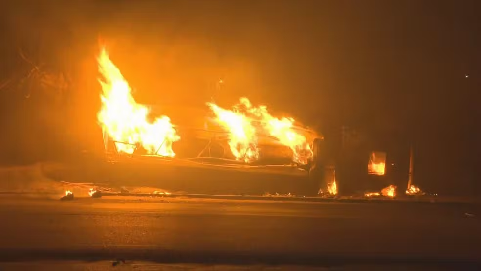 Caminhão carregado de combustível, tomba, explode e moradores são queimados