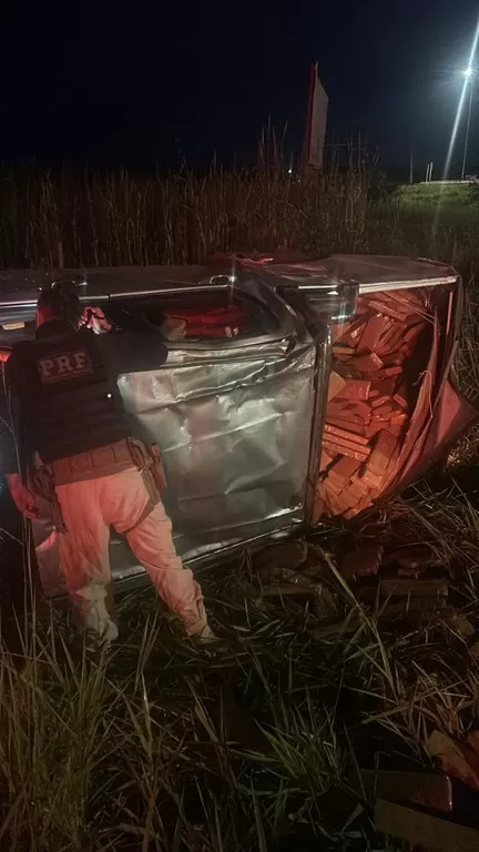 Durante fuga, motorista capota camionete com mais de 1 tonelada de maconha