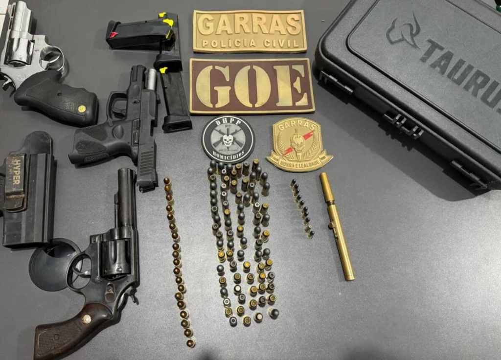 Os alvos da polícia foram encontrados em uma residência no bairro Jardim Samambaia com várias armas de fogo