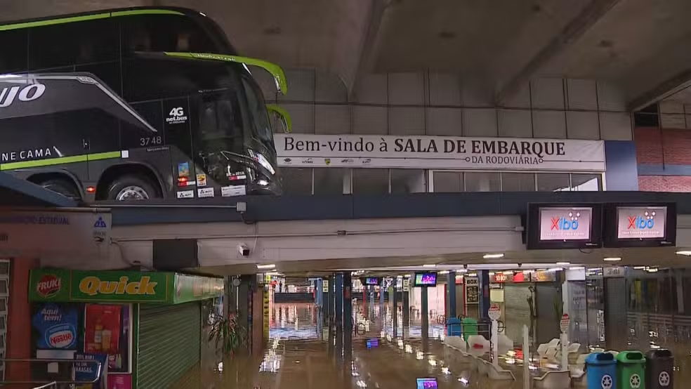 Temporal no RS: estação rodoviária de Porto Alegre alagada — Foto: Reprodução/RBS TV
