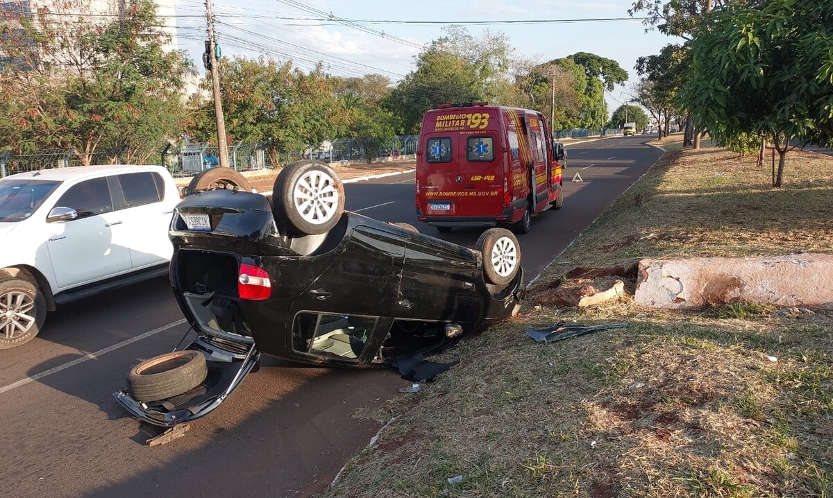Motorista de 63 anos perdeu o controle da direção e capotou o veículo na tarde desta sexta-feira (5) na Avenida Gunter Hans, em frente ao Hospital Regional de Campo Grande.