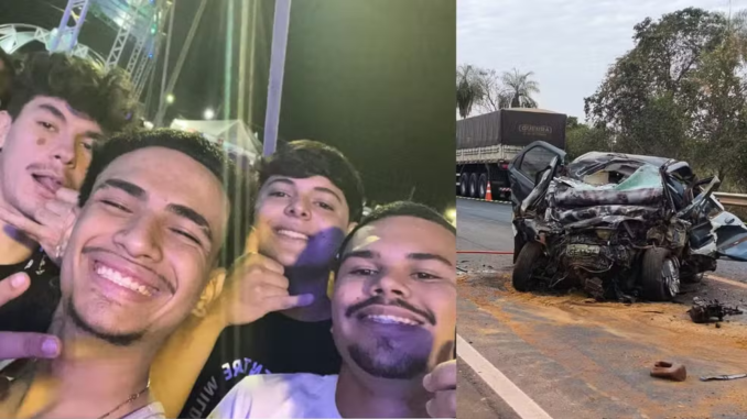 Alipio de Oliveira Neto, 19 anos; Carlos Daniel Marques Silva, 17 anos; Pedro Henrique Oliveira Lopes, 18 anos e uma quarta vítima que ainda não foi identificada morreram em acidente envolvendo carro e carreta, na madrugada deste domingo (7), no KM-300 da BR-163, entre Rio Brilhante e Dourados, a cerca de 200 quilômetros de Campo Grande.