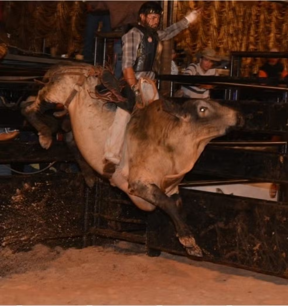 Ele chegou a completar oito segundos em cima do animal. Nas imagens do acidente é possível ver que a vítima ainda levanta e sobe na porteira.