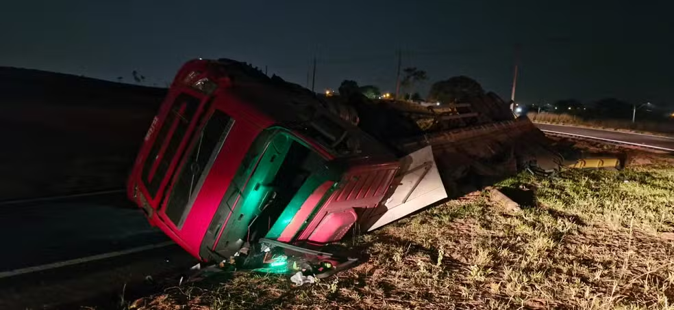 Uma carreta tombou, no começo da noite deste domingo (18) em um contorno da Rodovia Comandante João Ribeiro de Barros (SP-294), em Bauru (SP).