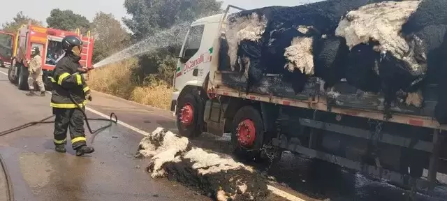 Ainda não foi possível precisar as causas do incêndio no caminhão carregado com algodão. O condutor do veículo não ficou ferido. São mais de 15 km interditados devido à densa fumaça, que encobre a rodovia.