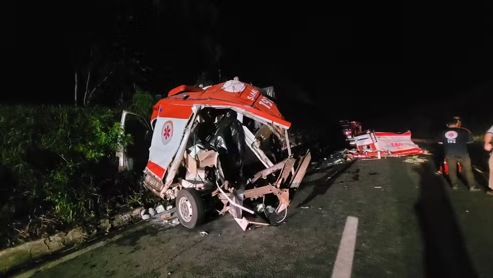 De acordo com a Polícia Rodoviária Federal (PRF), a ambulância colidiu transversalmente com o caminhão, que estava no sentido oposto. As causas da batida serão investigadas.
