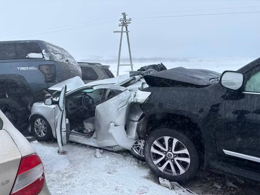 Um engavetamento gigantesco envolvendo cerca de 95 carros aconteceu na rodovia Astana-Petropavlovsk, no Cazaquistão, nesta sexta-feira (3).