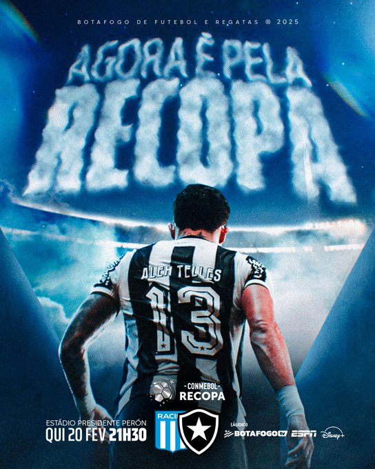 O Botafogo inicia, a partir das 21h30 (horário de Brasília) desta quinta-feira (20), a busca do inédito título da Recopa Sul-Americana. Para isto o Glorioso enfrenta o Racing (Argentina) no estádio El Cilindro, em Buenos Aires, em jogo que terá a transmissão da Rádio Nacional.