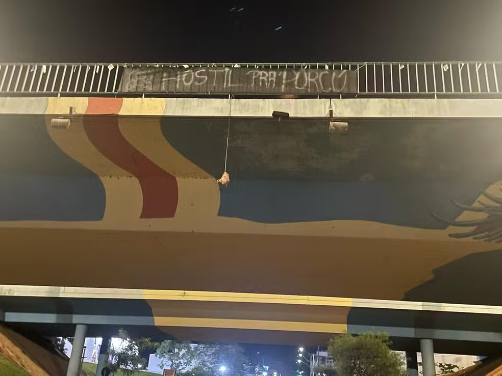 No dia do jogo de ida para a final do Paulistão 2025 entre Palmeiras e Corinthians, uma das principais avenidas de Campo Grande (MS) amanheceu com uma “mensagem subliminar”. No alto do pontilhão, uma cabeça de porco pendurada.