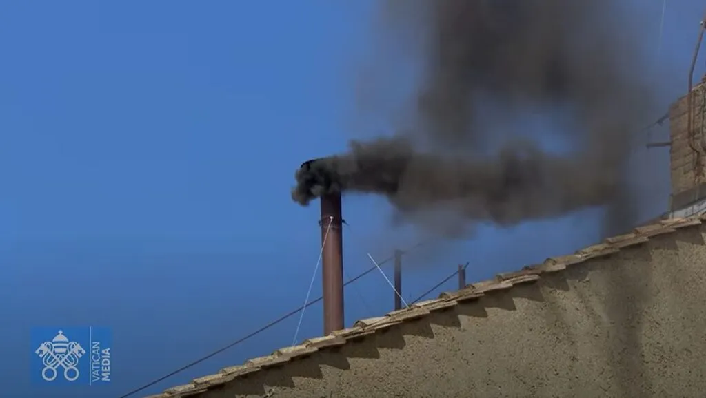 O Vaticano informou há pouco que o novo papa ainda não foi escolhido. A fumaça preta saiu da chaminé acima da Capela Sistina, indicando votos inconclusivos.