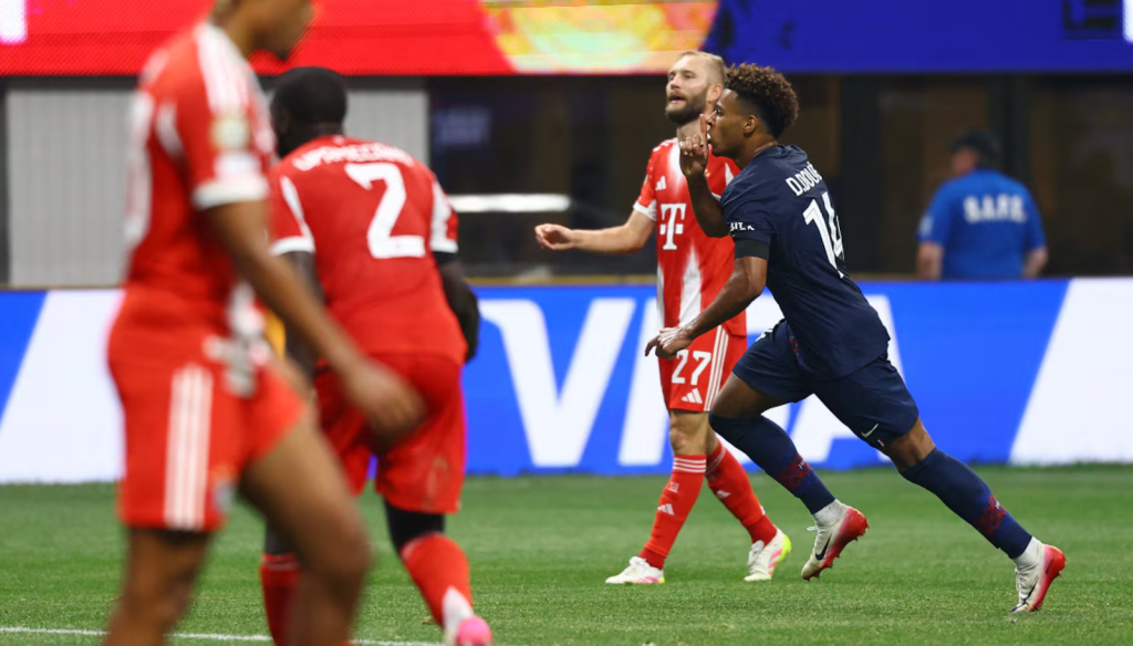 Em jogo brigado com uma lesão feia e duas expulsões, o PSGvenceu o Bayern de Munique por 2 a 0 e avançou à semifinal do Mundial de Clubes. A partida foi realizada neste sábado (5), no Mercedes-Benz Stadium, em Atlanta (EUA), e teve gols de Doué e Dembélé. Com domínio das ações do Bayern, os franceses foram mais efetivos e garantiram a classificação.