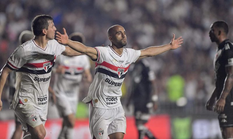 Lucas Moura assumiu a cobrança e, com tranquilidade, finalizou no canto direito para abrir o placar. Na comemoração, o atacante beijou o escudo da camisa, enquanto a torcida em São Januário protestava contra a decisão.