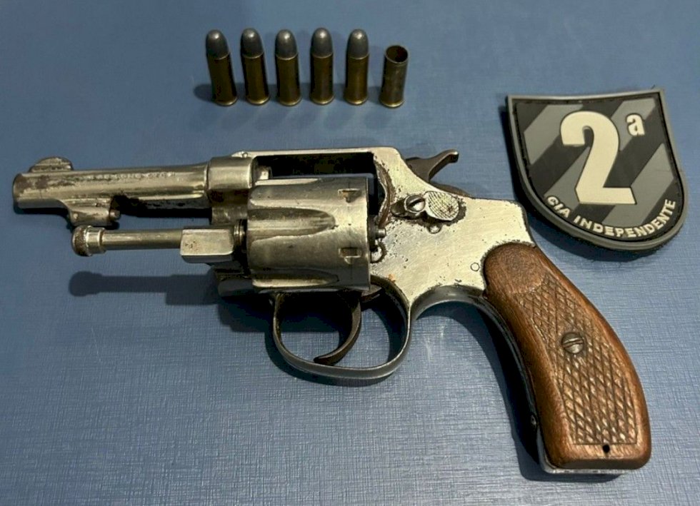 A PM acompanhou o proprietário até o imóvel, onde o revólver foi apresentado. Ele estava municiado com cinco munições intactas e uma deflagrada. No local indicado pela vítima, os policiais observaram que o disparo atingiu a parte inferior da porta do guarda-roupas, possivelmente ricocheteando antes de acertar a jovem.